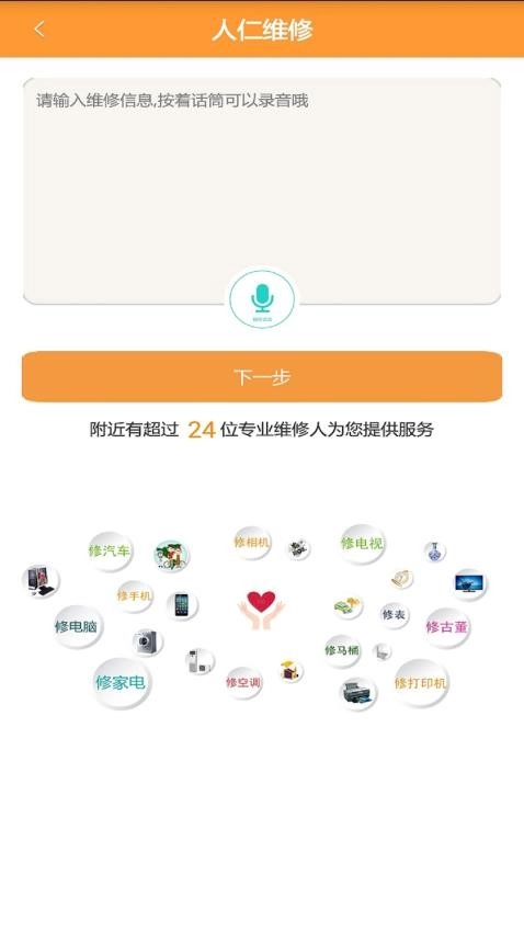 1、并打开人仁维修,完成登录就能自行选择维修分类下单;