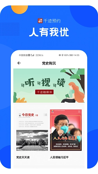 千迹预约具备快速预约车位的功能,融入红色党建文化氛围,为您提供专属的党史融媒体资讯服务,此外还有管家、公益、扶贫等板块可供您浏览!