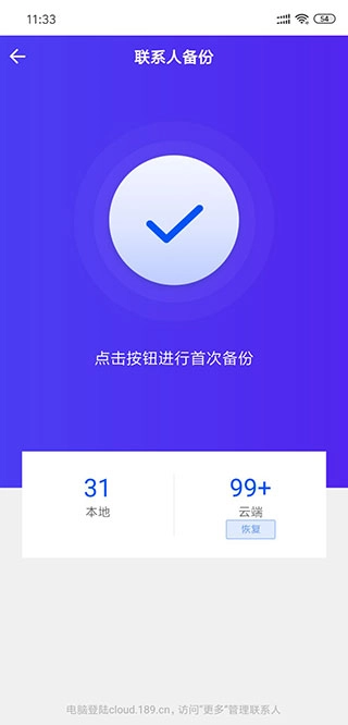 3、联系人备份与其他类型的备份,均支持将云端存储的备份内容恢复至手机设备中。