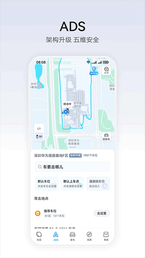 5、用户可通过订阅ADS高阶功能包,持续解锁更智能的驾驶体验,例如自动泊车、代客泊车等功能。