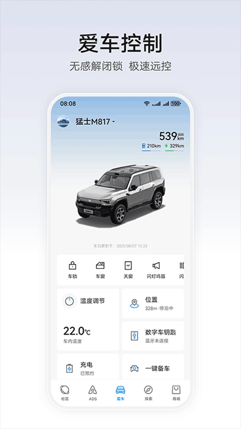 【爱车】绑定车辆后,可实时查看车辆情况,支持数字车钥匙、车辆远控、哨兵模式以及云瞰等服务,轻松掌握车辆状态。