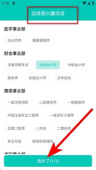 2、在选择项目页面,选择感兴趣的项目,点击选好了。