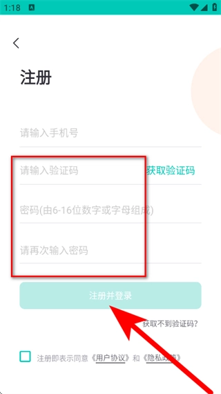 4、输入验证码,设置密码,勾选注册即表示同意后,点击注册并登录。