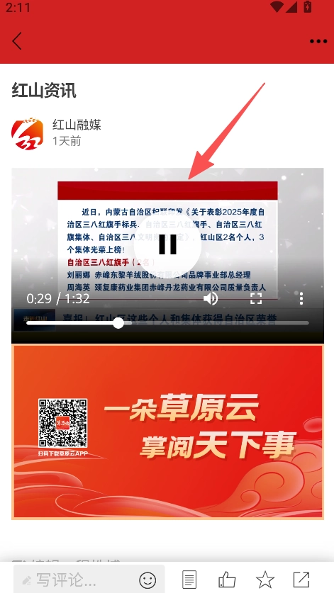 3、点击资讯视频,观看内容,还可参与评论、点赞互动。