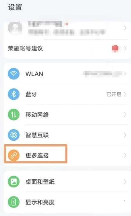 第一步:打开荣耀手机的设置界面,接着在设置页面中找到并点击【更多连接】选项。