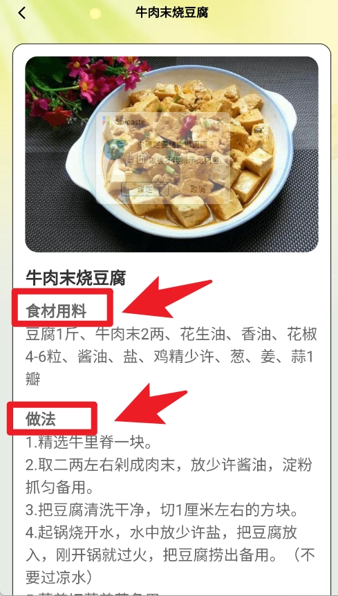 3、打开具体菜谱详情后,会显示完整的食材用料与做法步骤,方便用户跟随学习操作。