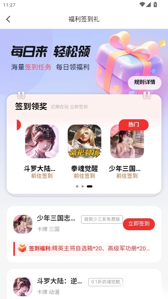 支持用户随时在线参与各种游戏签到,连续签到可以积累到更多的游戏福利。
