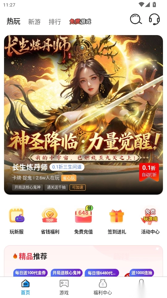 领取各种游戏折扣福利可以让用户低价省钱的玩游戏,让你玩游戏零压力;