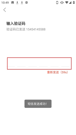 4、在输入验证码页面,填写收到的验证码完成登录/注册操作。