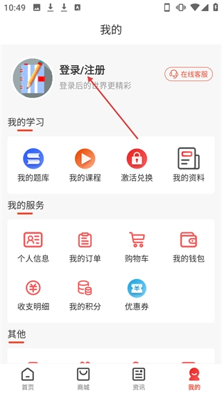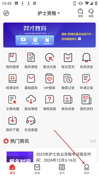 3、集听课做题文库图书购买于一体,设商城学习个人中心三大板块,一站式满足全流程学习需求。