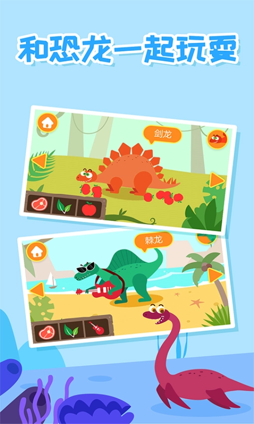 可在应用中和恐龙开启愉快的游戏体验,并能轻松操控和使用各个工具类型;