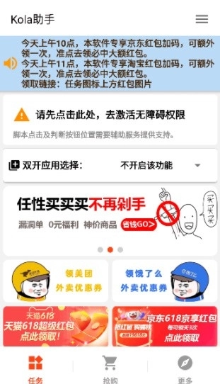 kola任务助手是一款整合了多种功能的软件,用户无需耗费过多时间,只需点击几次就能迅速完成各类优惠活动的参与流程,帮助用户在最短时间内获取更多优惠福利;同时它还能按照设定自动执行各类任务,用户仅需设置关键词,软件便会自动检索并浏览相关商品,以此达成任务要求。