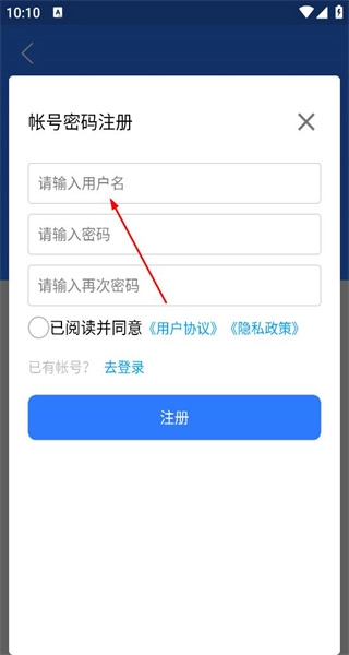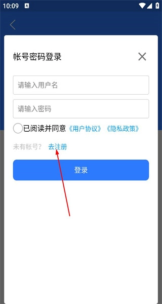 3、在账号登录界面,看到账号密码登录选项和去注册入口,点击去注册,进入账号注册页面。