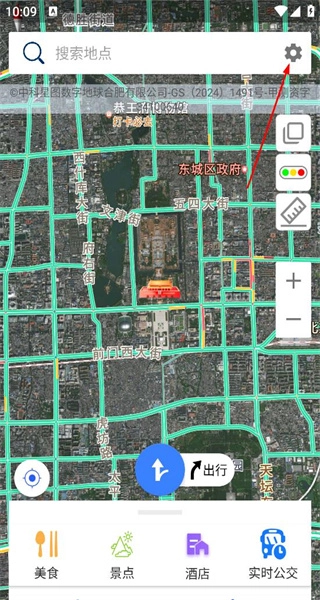 1、启动北斗导航应用,进入地图主界面后,能看到搜索栏与功能按钮,接着点击设置图标,即可进入个人中心页面。