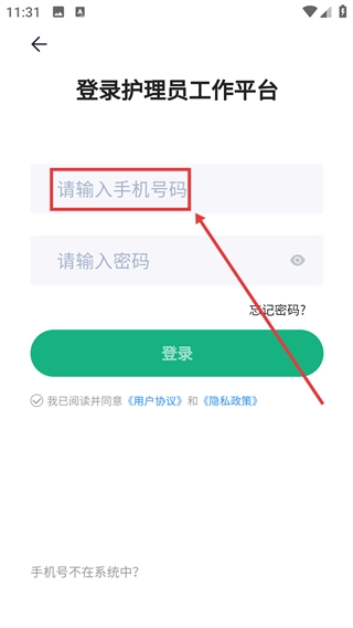 1、在手机号码输入框内填写需要用于登录的手机号。