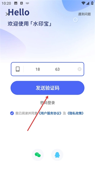 3、输入手机号码后点击【发送验证码】按钮,获取手机验证码。