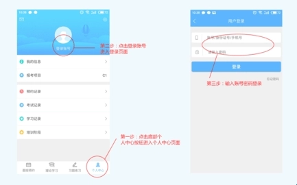 1、首次进入系统时,需完成注册登录操作:输入学员账户与密码后点击登录按钮。其中,账户规则为:持身份证者以身份证号码作为账户,初始密码默认身份证后六位;持军官证、港澳台通行证的人员及外籍人员,则以手机号码作为账户,初始密码统一为666888。