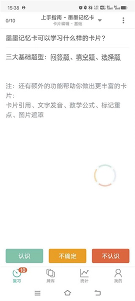 2、基础的是问答题,可以选择回答认识、不确定或不认识,软件会据此判断你的记忆程度