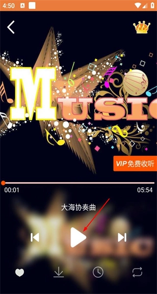 3、选择大海协奏曲,进入播放页面,点击播放按钮收听,界面展示音乐风格画面,可随时调整播放。