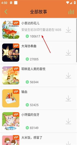1、启动软件后,进入全部故事列表界面,找到并点击《小意达的花儿》,即可进入该故事的播放页面。