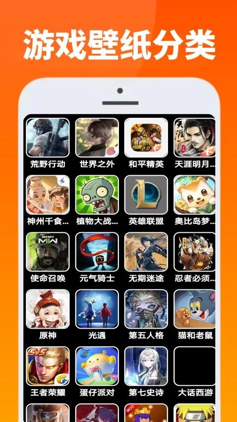 不同的游戏壁纸分类呈现,可通过壁纸类型快速找到喜欢的图片;