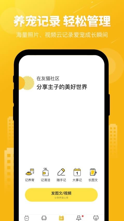 友猫为用户提供在线宠物社交功能,用户可在此进行猫咪社交互动,记录宠物日常点滴,通过持续更新养宠记录,能更便捷地分享至社区,与其他养宠达人轻松互动交流,从而获取更多养猫经验,学习掌握丰富的宠物知识。