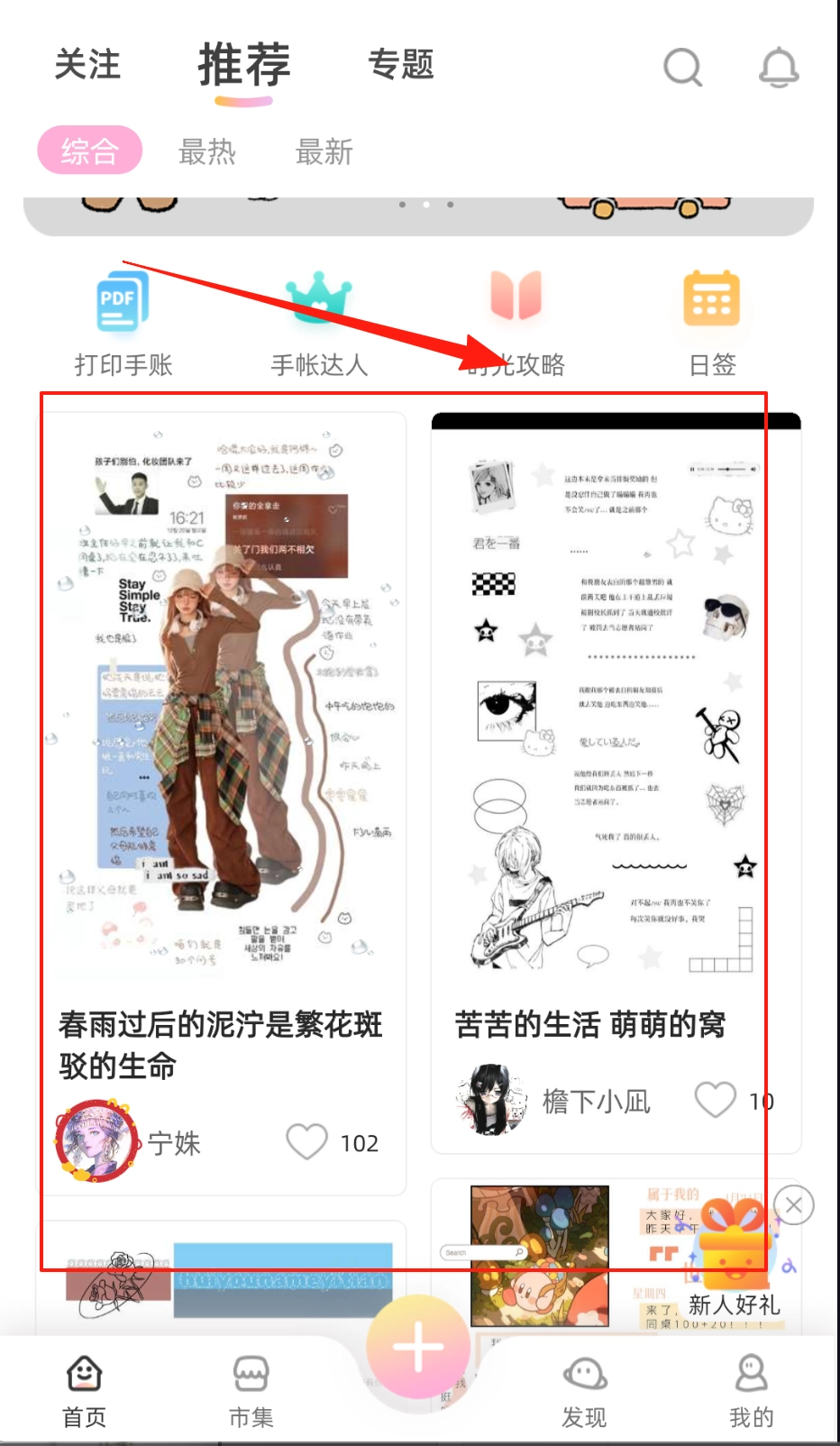 3、手帐分类。同样是上图,首页那里有各种分类。可以看到这里收录和发表的手帐数目挺多。