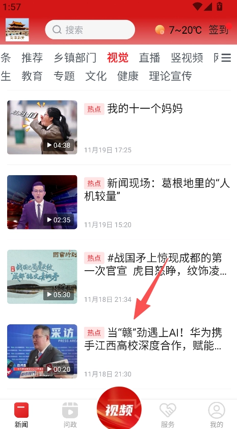 3、板块分类清晰,设视觉、直播、竖视频及教育、专题、文化等板块,方便用户快速定位感兴趣的资讯类型,提升资讯获取效率。