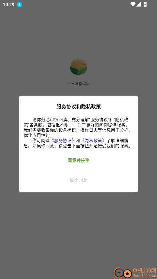 1.打开软件阅读“服务协议和隐私政策”点击“同意并接受”进入