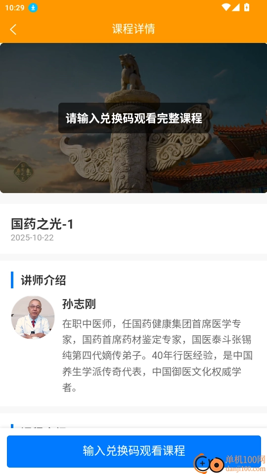 4.进入到课程详情页面中点击“输入兑换码观看课程”即可输入兑换码观看课程学习
