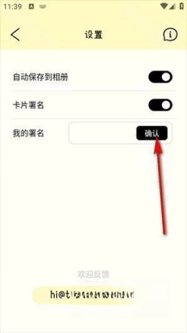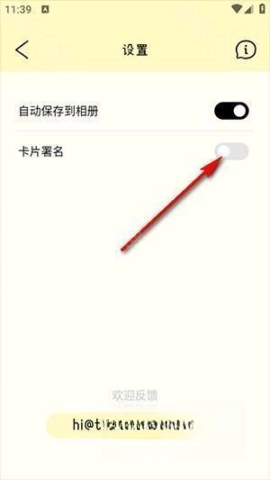 2、在设置页面选择卡片署名,轻松输入你的名字。