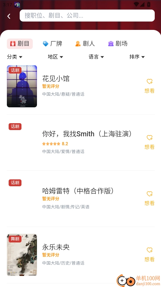 在找剧目功能中可通过剧目分类、地区选择、语言类型筛选查找你想看的剧目资源。