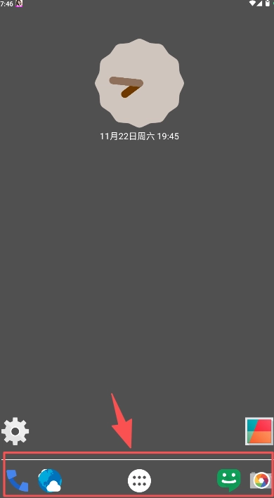 3、屏幕将呈现透明桌面模拟状态,显示特定时钟与底部应用图标。