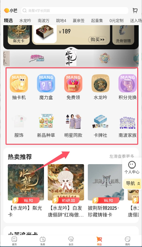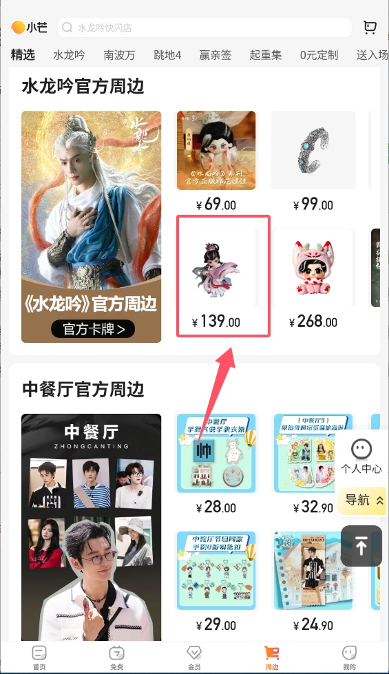 1、在购物专区能看到商品推荐,像影视周边、收藏卡之类的都有。商品信息涵盖价格、图片等详细内容,便于大家了解商品的具体情况。