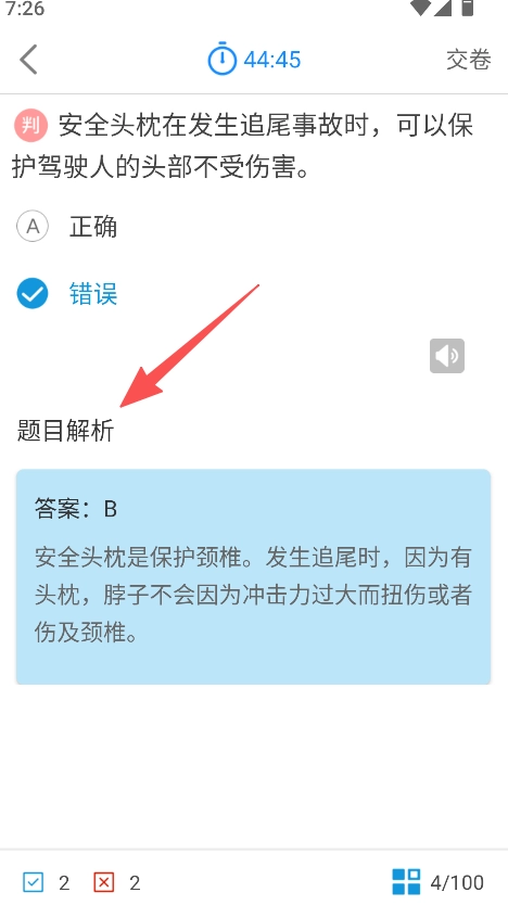 2、完成模拟考试,查看错题,点击题目解析学习知识点。