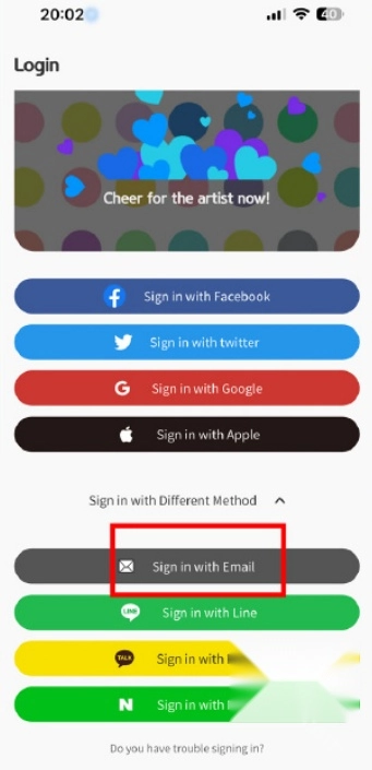 1、启动Fancast安卓版应用,进入登录页面后,点击选择“邮箱登录”选项。