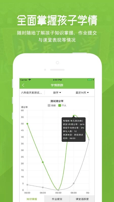 随时随地了解孩子知识掌握、作业提交与课堂表现等情况。