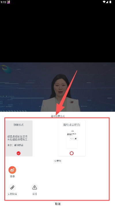 3、在弹出的分享界面选择“图片形式”或“链接形式”,点击对应平台图标完成分享。
