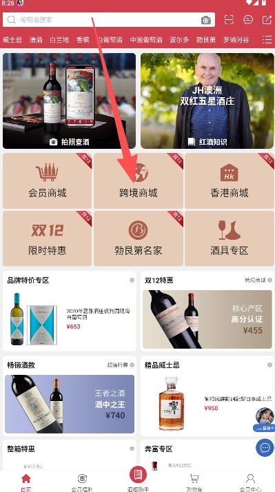 《红酒世界》是一款融合知识查询与购酒服务的专业工具。软件顶部配备搜索栏以及威士忌、清酒、波尔多等细致的酒类分类导航,方便用户快速查找目标内容。其核心功能“拍照查酒”能够借助图片识别酒款信息,红酒知识板块则提供丰富的学习资料。此外,软件还整合了会员商城、跨境商城等多种购物渠道入口,为红酒爱好者打造了从信息查询到便捷购买的一站式服务体验。