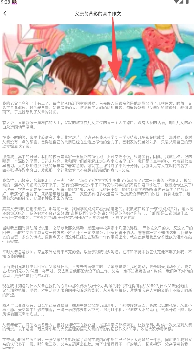 2、进入作文页面浏览列表,选择目标文章如“父亲的背影高中作文”。