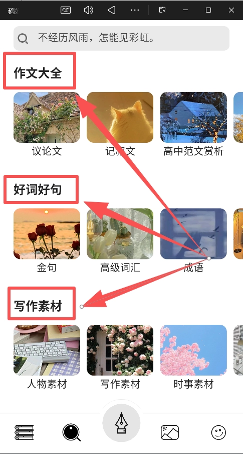 软件开设人物专题栏目,深入分析国内外知名人物的经典名言。通过这些内容帮助用户积累优质的写作素材,丰富文章内容。