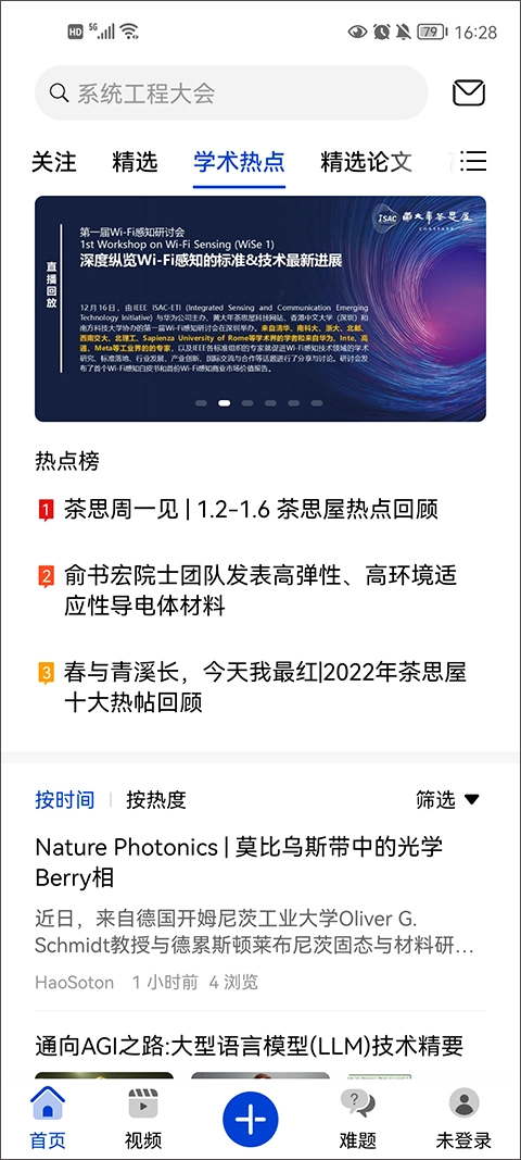 1、可在首页浏览学术热点内容,像【尼克老师】主讲的【计算与智能的第一性原理】讲座,以此开展学术交流活动。