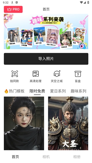 3. 会员服务:新用户享有三天试用权益,同时提供Pro会员服务,解锁全部模板、快速生成、高清原图、体验最新功能等。