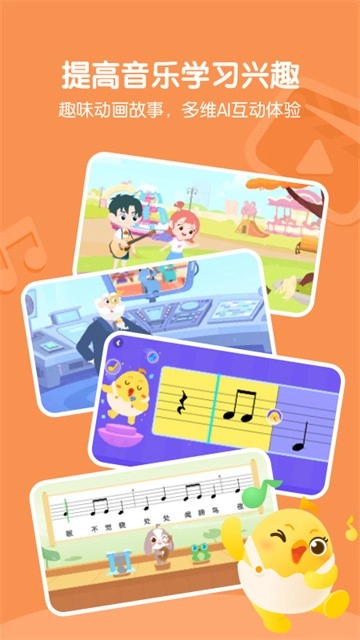3、动画故事融知识点:将音乐知识点融入动画故事,让学习过程充满趣味,告别枯燥,激发孩子学习兴趣。
