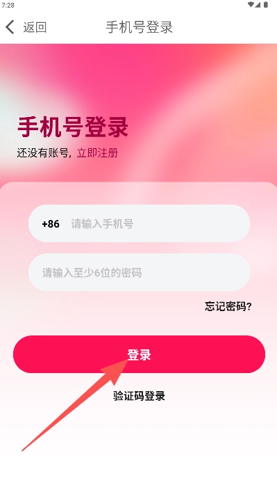 1、启动软件后进入登录界面,输入手机号码和密码以完成账号登录操作。