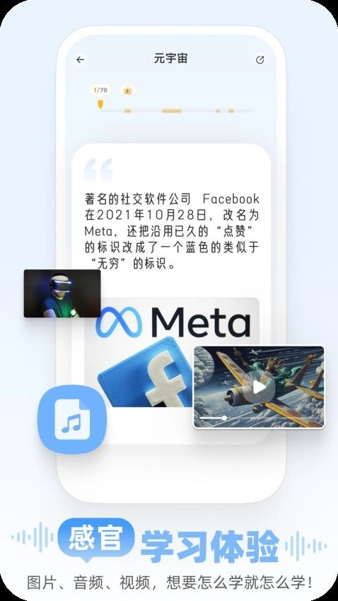 3、支持用户可以对更多知识进行多方式的学习,促进用户的感官体验。