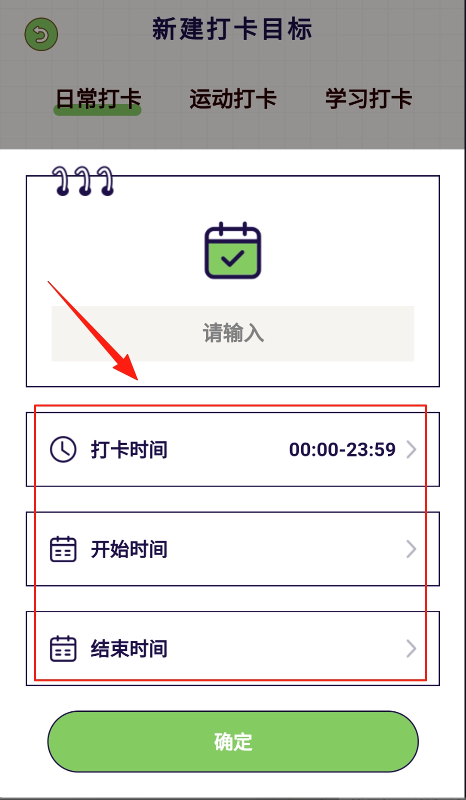 2、指定计划的时候,好习惯打卡很贴心的设计了如颜色,打开时间,开始日期,结束日期等设置,定个小目标吧。