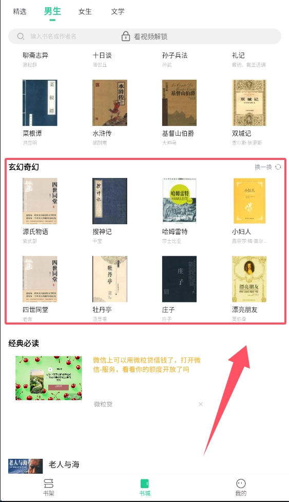 1、若你有清晰的阅读目标,最快捷的方式是直接使用顶部的搜索栏。你可以输入书名关键词,比如“红楼梦”,或者输入作者名,例如“曹雪芹”,系统便会自动为你匹配出相关的作品。
