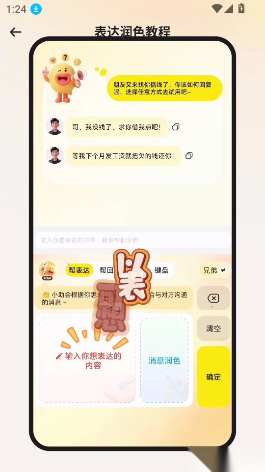 2、助力用户高情商回复聊天,实时提高用户的情商水平。