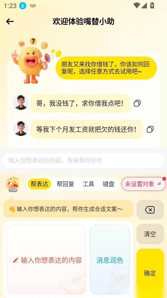 1、专属的聊天助手可以帮助用户轻松聊天回复,快速破冰好友的关系。